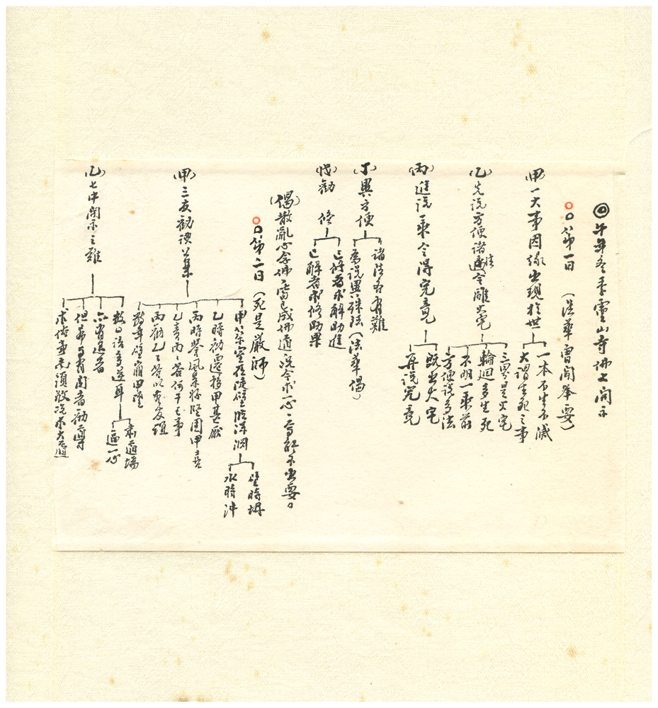 | 描述-目次 | 法華曾聞舉要、死是嚴師、道場煉鐵爐之喻、船上水之喻、生死可厭往生最樂、用第二日之題二日改說規矩、圓滿勗勉詞 |
