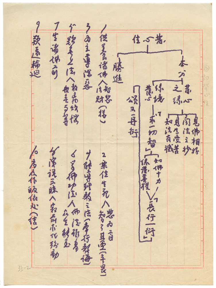 | 描述-目次 | 增長佛智、無障無礙、識法知根、菩提三心、西方釋名、唯識定位、初發心住、二治地住、三修行住(自分護煩惱行、護小乘行)、四生貴住(從聖教生、三際)、五具足方便住(具足方便)、六正心住(正心)、七不退住、八童真住、九法王子住(自分、勝進)、十灌頂住(灌頂、五種大、佛十力 |
