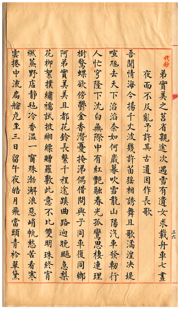 | 描述-摘要 | 吾聞情海今揚千丈波。幾許苗猺相誘舞且歌。潏湟決堤喧豗去。天下滔滔奈如何。歲暮吹雪龍山陽。汽車發軔行人忙。穹隆下沈白無際。中有紅艷融春光。孤鸞思棲連理樹。驚蝶欲傍鬱金香。潛憂掩涕偶借問。與子同車復同鄉。阿弟實美美且都。花鈴長繫千程途。蹊曲路迥晚飈急。梨花柳絮撲繡襦。試披緗縹贈羅敷。此意不比雙明珠。終宵燃蒸野店靜。毡冷香溫一窗殊。渤澥浪惡峭帆愁。苦看寒雲捲中流。扃艙危坐三日留。午夜皓月飛當頭。青衿翠黛促裝起。齊達彼岸消夷猶。敦風不歇洙泗間。噓吸逆折狂濤瀾。忽焉目成申禮防。心兵嚴戢堅如磐。捐玦遺佩時所尚。志寧體疏古應難。阿弟真能無愧衾。羞道春宵值千金。顏叔子。魯展禽。萬古于喁結知音。吾將收作暗室箴。須取高山流水。與爾譜鳴琴。 |