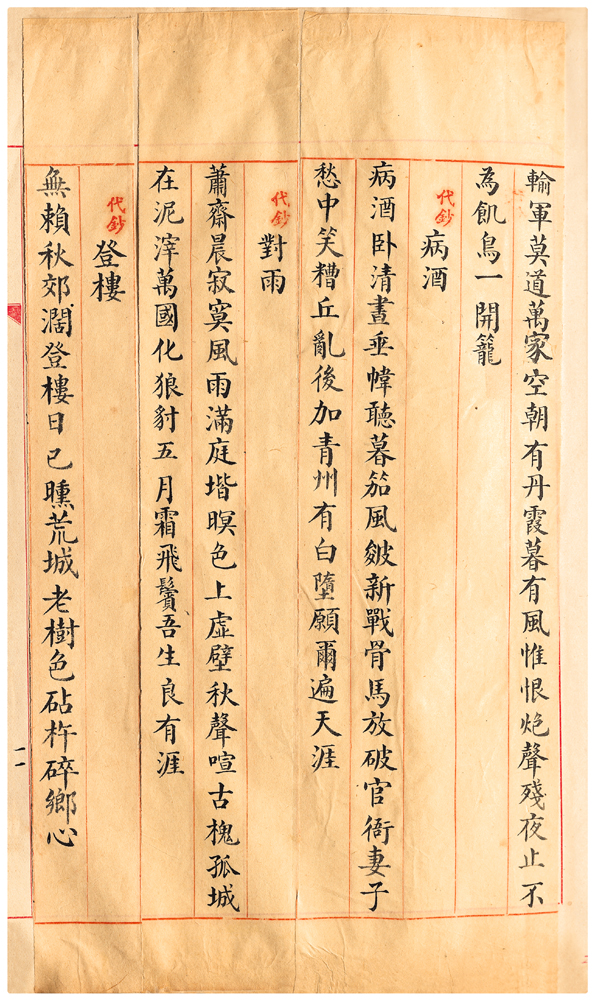 | 描述-摘要 | 蕭齋晨寂寞。風雨滿庭堦。暝色上虛壁。秋聲喧古槐。孤城在泥滓。萬國化狼豺。五月霜飛鬢。吾生良有涯。 |