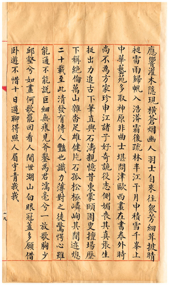 | 描述-摘要 | 山窗佳氣突兀三千丈。惟覺涼颸颯颯生簾幌。誰驅五嶽置几前。疑是真宰闢天壤。巒崩澗落怪石走。波蹙泉立如應響。灌木隱現橫蒼烟。幽人羽士自來往。眾芳細茸披晴昶。雷雨歸帆入浩漭。霜後疏林半江干。月中積雪千峯上。中華藝苑多取神。原非曲士堪問津。歐西畫在書卷外。時尚不為方家珍。申江諸子好奇詭。役志側媚喪其真。張生挺出力追古。下筆直與石濤親。憶昔東蒙頤園叟。擅場歷下稱絕倫。萬山雜沓足雄健。片石孤松極嶙峋。其間迹熄二十載。至此清發有傳人。豔也識力薄。對之徒驚愕。心雖能通不能說。巨細無痕見斧鑿。為君濡毫兮一放歌。胸少邱壑兮如畫何。歌罷回看人間世。湖山白眼冠蓋多。願借臥遊不惜十日過。聊得照人眉宇青峨峨。 |