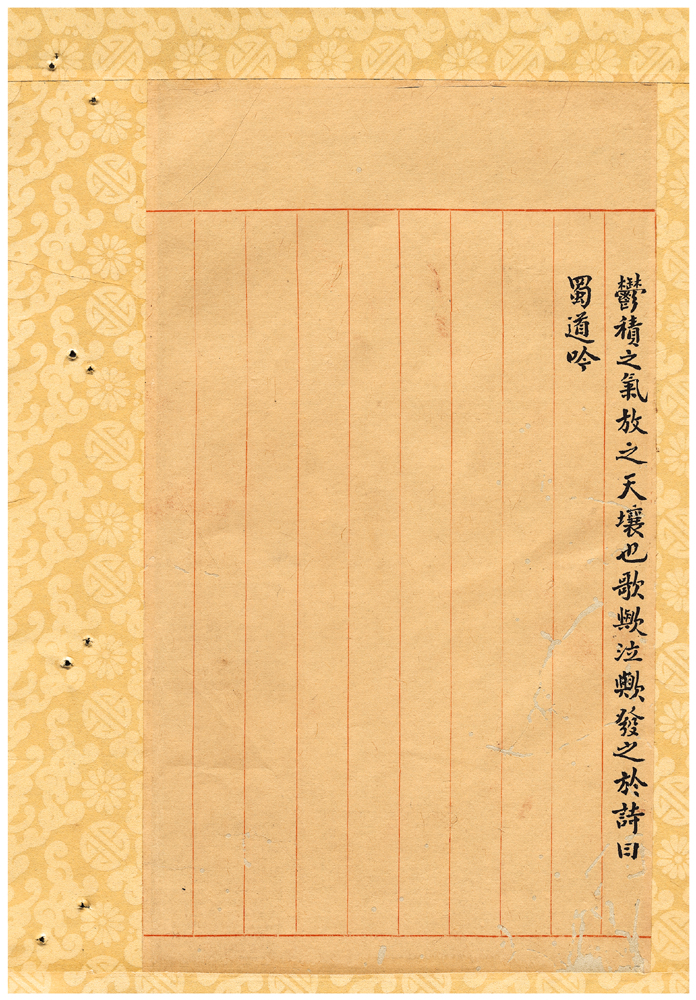 | 描述-摘要 | 蜀道吟小引一篇。李炳南撰 〈蜀道吟小引〉︰日人冀逞吞華夙謀,百計尋釁。歲丁丑,借端寇宛平,造成蘆溝橋之變。復傾陸海空軍,南北並進,九貢相繼陷。政府遷渝,余隨孔上公追扈之。日機飛渝轟炸無間宿夕,連續近四載,閻閭盡成焦土。上公兩易其居,俱化灰燼。因之城鄉互徙,後避入歌樂山結廬焉。然行役而歷山川,居處而棲巖岫;當其邂逅乎朝暉夕陰、時花候鳥之變,流竄乎硝雲鐵雨,堠火羽書之交;感夫天涯崎嶇孤客淪落,未嘗不搔首扼腕,欲一吐其鬱積之氣放之天壤也,歌歟!泣歟?發之於詩曰:蜀道吟。 |