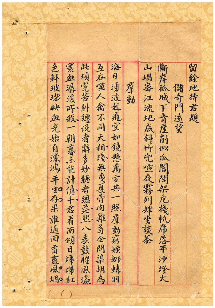 | 描述-摘要 | 芭蕉上與翠樓齊。欲借新詩印雪泥。一葉萬言書不盡。好留餘地待君題。 |
