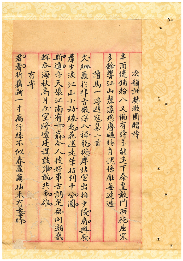 | 描述-摘要 | 文細嚴於律。旨微深入禪。能從摩詰室。出拍少陵肩。興廢羣生淚。江山小劫緣。是花還是筆。拈到十分圓。 |