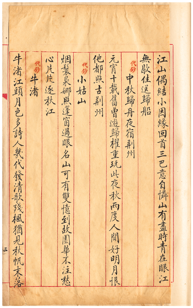 | 描述-摘要 | 牛渚江頭月色多。詩人幾代發清歌。殘楓猶見秋帆末。落葉已隨今日波。 |