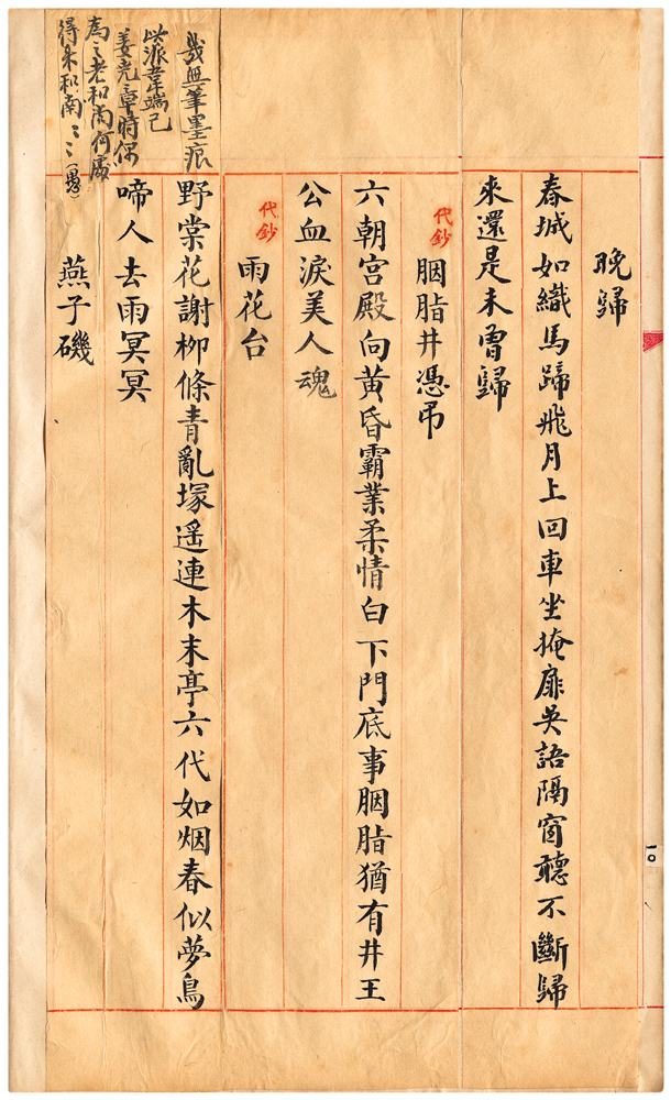 | 描述-摘要 | 六朝宮殿向黃昏。霸業柔情白下門。底事胭脂猶有井。王公血淚美人魂。 |