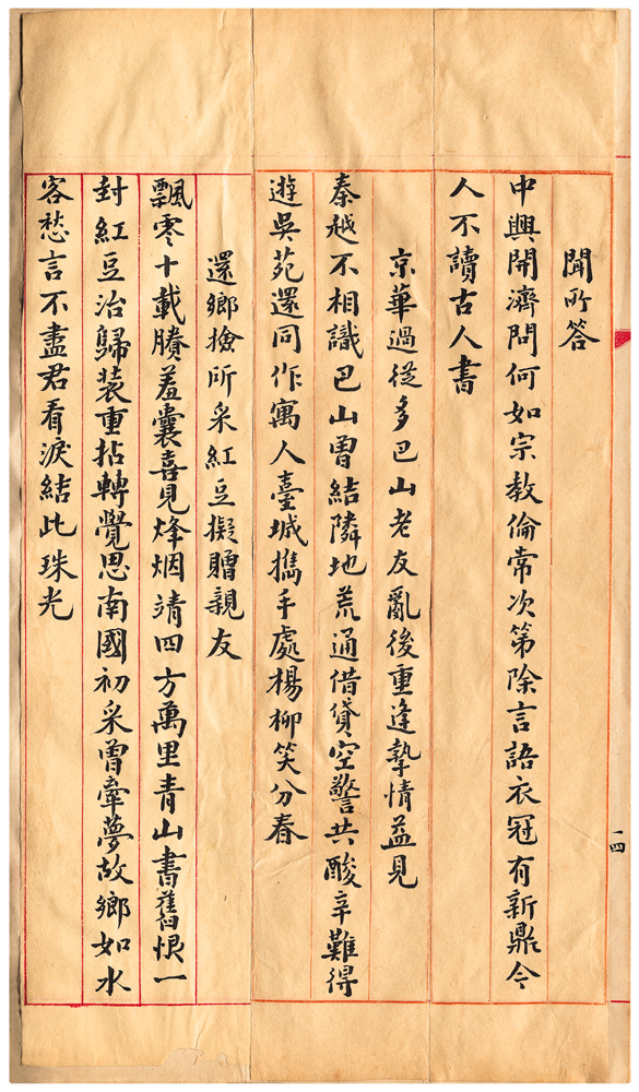 | 描述-摘要 | 中興開濟問何如。宗教倫常次第除。言語衣冠有新鼎。今人不讀古人書。 |