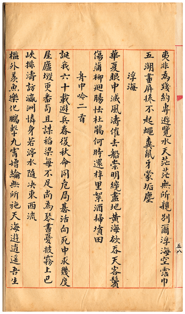 | 描述-摘要 | 誕我六十載。避兵春復秋。命同危局碁。活向死中求。幾度屋廬燬。更番茍且謀。稻梁每不足。尚為琴書憂。披霧上巴峽。排濤訪瀛洲。憐身若渟水。隨決東西流。 |