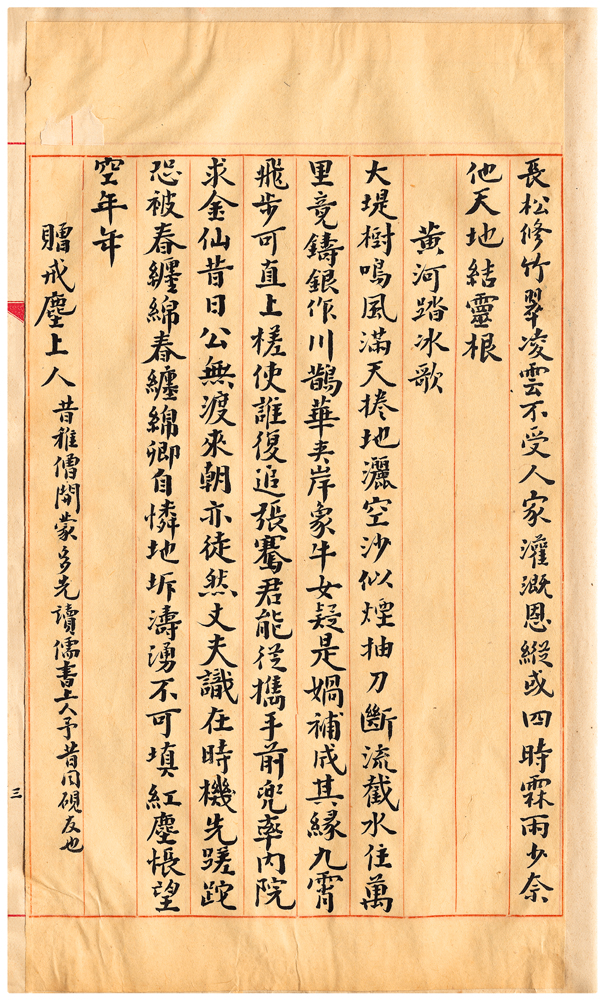 | 描述-摘要 | 大堤樹鳴風滿天。捲地灑空沙似煙。抽刀斷流截水住。萬里竟鑄銀作川。鵲華夾岸象牛女。疑是媧補成其緣。九霄飛步可直上。槎使誰復追張騫。君能從。攜手前。兜率內院求金仙。昔日公無渡。來朝亦徒然。丈夫識在時機先。蹉跎恐被春纏綿。春纏綿。卿自憐。地坼濤湧不可填。紅塵悵望空年年。 |