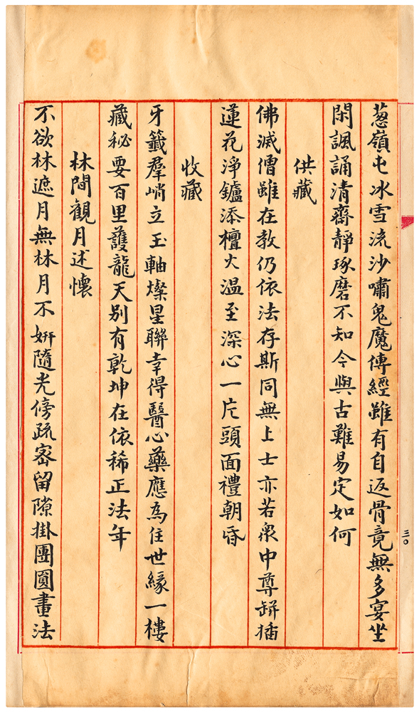 | 描述-摘要 | 蔥嶺屯冰雪。流沙嘯鬼魔。傳經雖有自。返骨竟無多。宴坐閑諷誦。清齋靜琢磨。不知今與古。難易定如何。 |