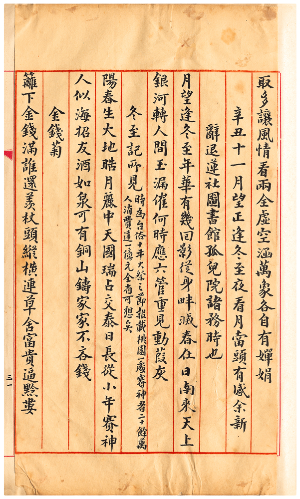 | 描述-摘要 | 陽春生大地。皓月麗中天。國瑞占交泰。日長從小年。賽神人似海。招友酒如泉。可有銅山鑄。家家不吝錢。 |
