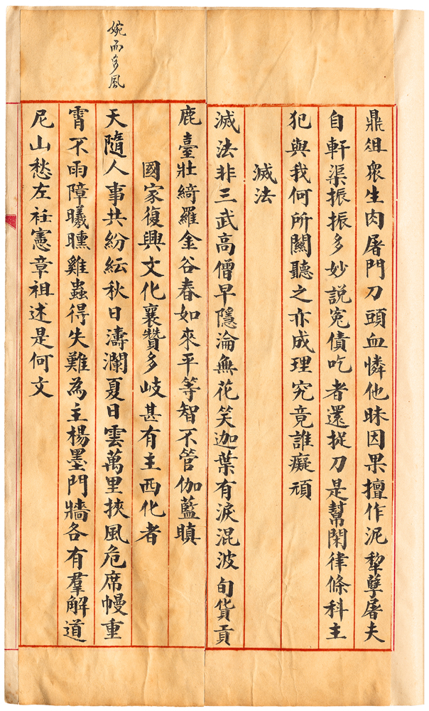 | 描述-摘要 | 天隨人事共紛紜。秋日濤瀾夏日雲。萬里挾風危席幔。重霄不雨障曦曛。雞蟲得失難為主。楊墨門牆各有羣。解道尼山愁左衽。憲章祖述是何文。 |