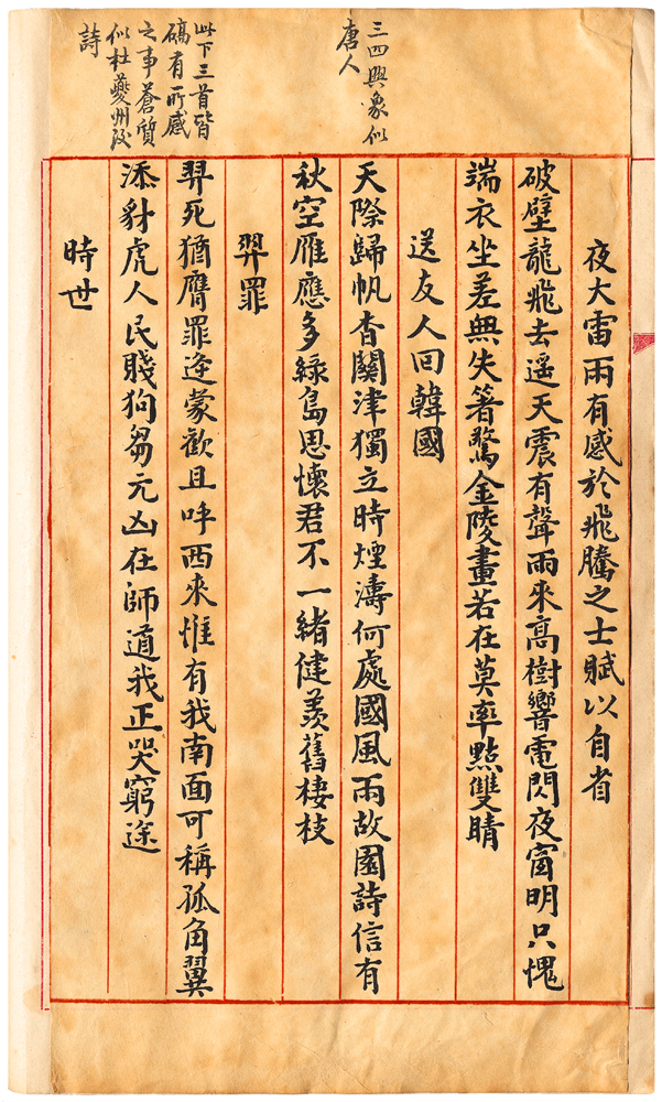 | 描述-摘要 | 天際歸帆杳。關津獨立時。煙濤何處國。風雨故園詩。信有秋空雁。應多綠島思。懷君不一緒。健羨舊棲枝。 |