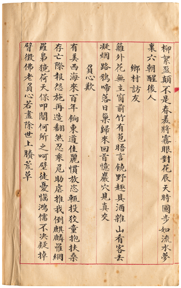 | 描述-摘要 | 柳絮盈顛不是春。羞將霧眼對花辰。天時國步如流水。夢裏六朝醒後人。 |