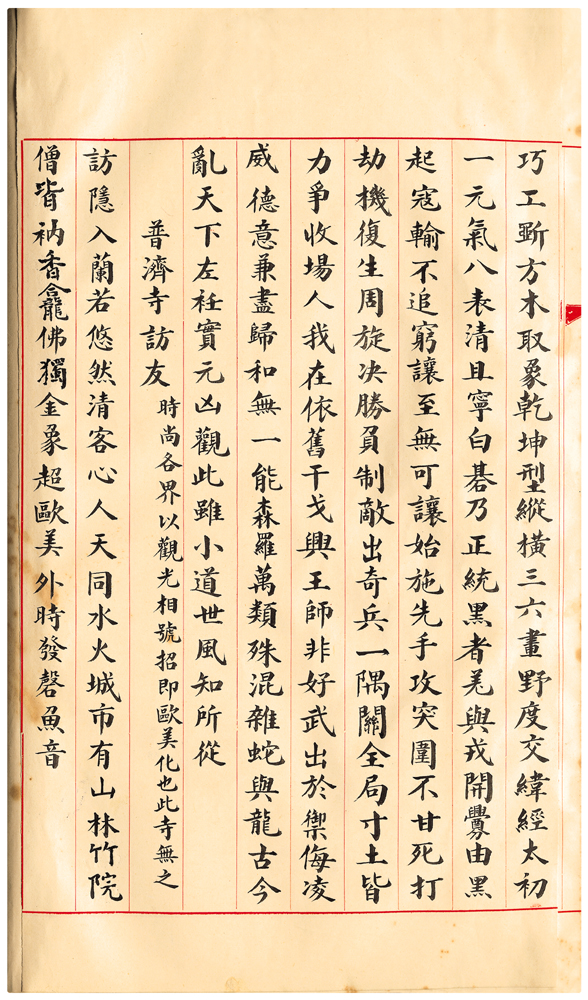 | 描述-摘要 | (時尚各界以觀光相號招,即歐美化也,此寺無之) 訪隱入蘭若。悠然清客心。人天同水火。城市有山林。竹院僧皆衲。香龕佛獨金。象超歐美外。時發磬魚音。 |