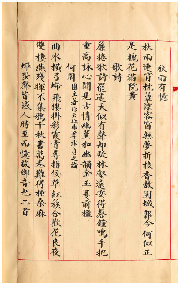 | 描述-摘要 | 簾捲歌詩罷。遙天似有聲。却疑林壑遠。安得磬鐘鳴。手把重高詠。心開見古情。幽篁和幽韻。金玉戛前楹。 |