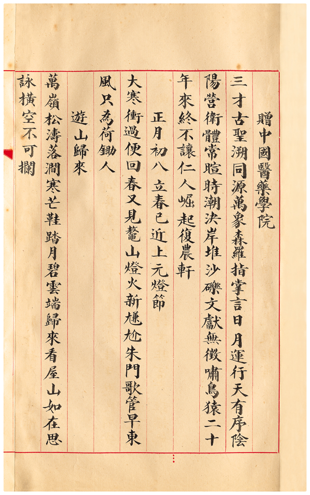 | 描述-摘要 | 三才古聖溯同源。萬象森羅指掌言。日月運行天有序。陰陽營衛體常暄。時潮決岸堆沙礫。文獻無徵嘯鳥猿。二十年來終不讓。仁人崛起復農軒。 |
