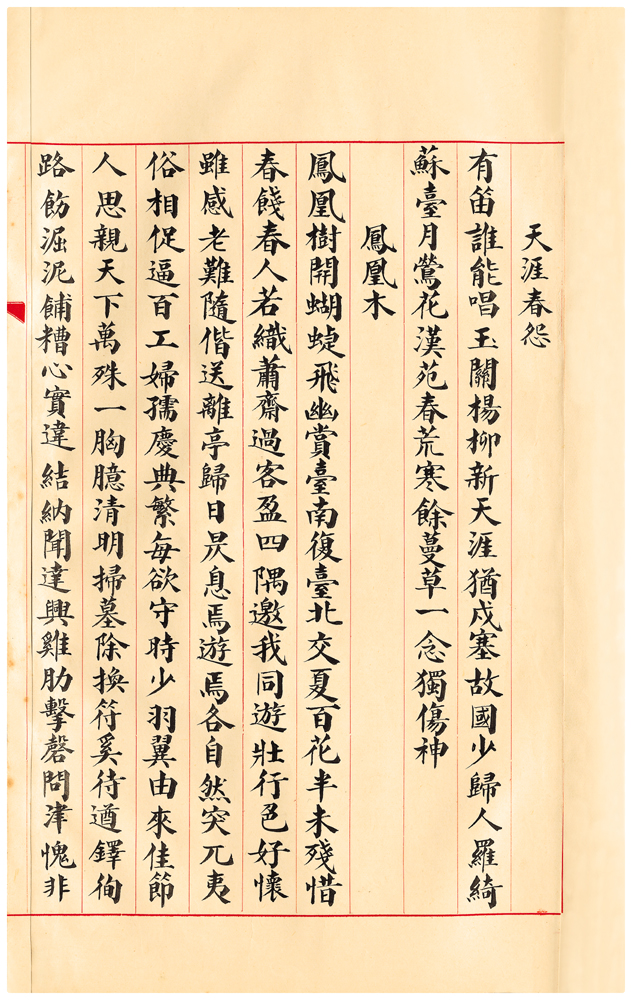 | 描述-摘要 | 鳳凰樹開蝴蜨飛。幽賞臺南復臺北。交夏百花半未殘。惜春餞春人若織。蕭齋過客盈四隅。邀我同遊壯行色。好懷雖感老難隨。偕送離亭歸日昃。息焉遊焉各自然。突兀夷俗相促逼。百工婦孺慶典繁。每欲守時少羽翼。由來佳節人思親。天下萬殊一胸臆。清明掃墓除換符。奚待遒鐸徇路飭。淈泥餔糟心實違。結納聞達興雞肋。擊磬問津愧非才。冥飛深羨鴻避弋。前朝惠政曾勸農。畎畝草茂無稼穡。虞舜五絃操南風。阜財解慍民不識。 |