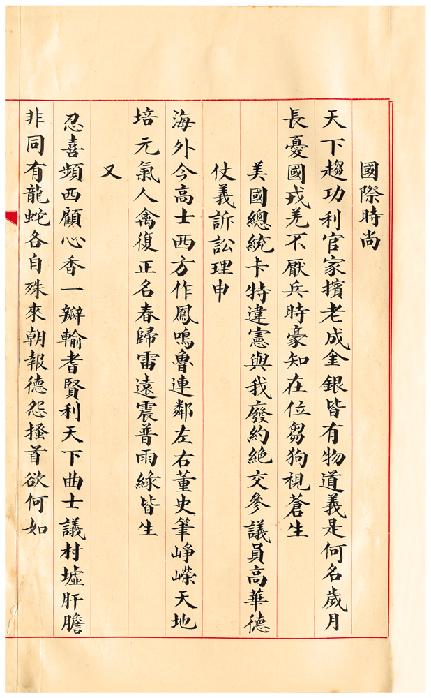 | 描述-摘要 | 天下趨功利。官家擯老成。金銀皆有物。道義是何名。歲月長憂國。戎羌不厭兵。時豪知在位。芻狗視蒼生。 |