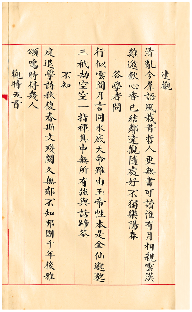| 描述-摘要 | 淆亂今群語。風裁昔哲人。更無書可讀。惟有月相親。雲漢難邀飲。心香已結鄰。達觀隨處好。不獨樂陽春。 |