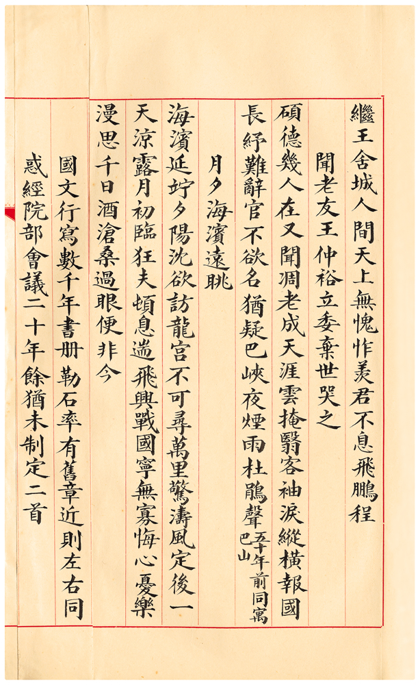 | 描述-摘要 | 碩德幾人在。又聞凋老成。天涯雲掩翳。客袖淚縱橫。報國長紓難。辭官不欲名。猶疑巴峽夜。煙雨杜鵑聲。 |