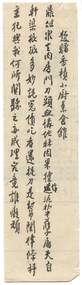| 數位檔案連結 | 辛亥續鈔上未定稿-題贈香積小廚素食館 .jpg |