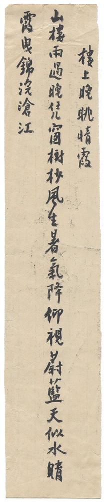 | 描述-摘要 | 山樓雨過晚凭窗。樹杪風生暑氣降。仰視蔚藍天似水。晴霞曳錦浣滄江。 |