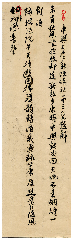 | 數位檔案連結 | 辛亥續鈔上未定稿-中興大學新蟬詩社第三集題辭兩首之一.jpg |