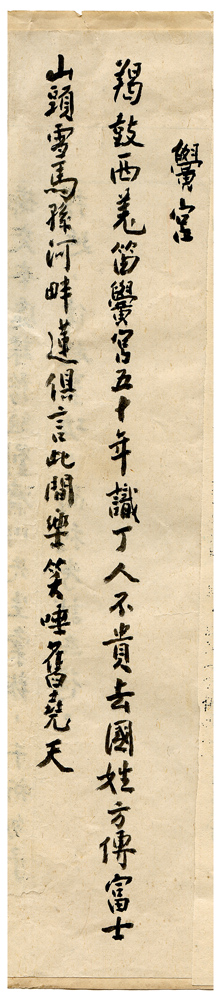 描述-摘要 | 羯鼓西羌笛。黌宮五十年。識丁人不貴。去國姓方傳。富士山頭雪。馬孫河畔蓮。俱言此間樂。笑唾舊堯天。 |
