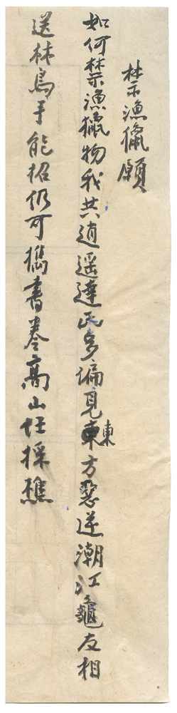 描述-摘要 | 如何禁漁獵。物我共逍遙。達氏多偏見。東方惡逆潮。江龜友相送。林鳥手能招。仍可攜書卷。高山任採樵。 |