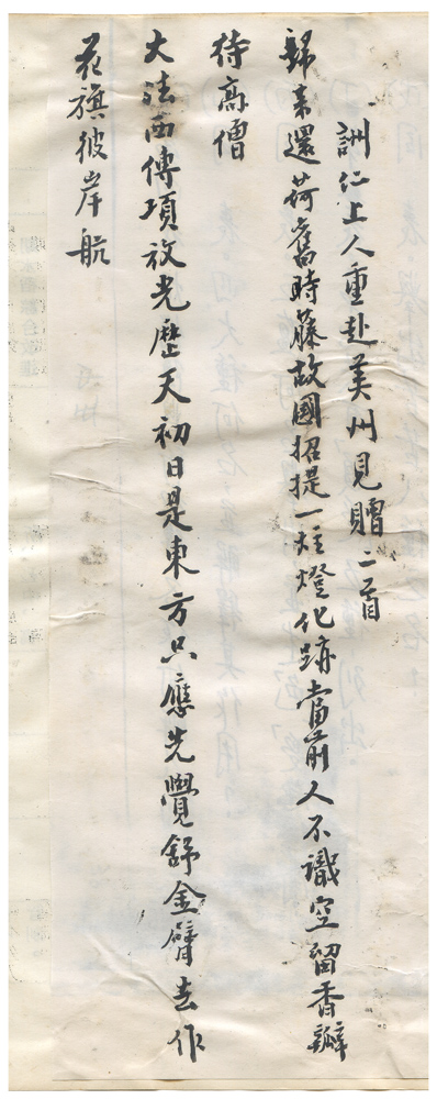 | 描述-摘要 | 大法西傳項放光。歷天初日是東方。只應先覺舒金臂。去作花旗彼岸航。 |