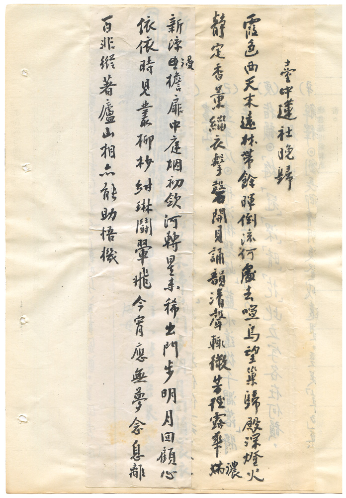 | 數位檔案連結 | 辛亥續鈔中未定稿-臺中蓮社晚歸.jpg |