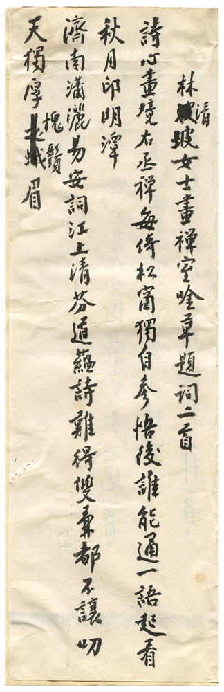 | 件名 | 林清波女士畫禪室碒草題詞兩首之一 |