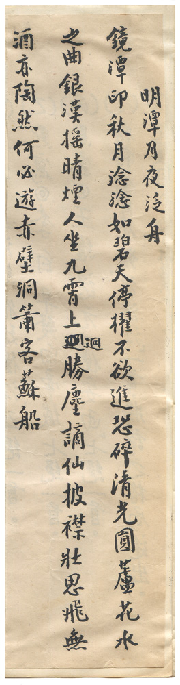 | 描述-摘要 | 鏡潭印邱月。淰淰如碧天。停櫂不欲進。恐碎清光圓。蘆花水之曲。銀漢搖晴煙。人坐九宵上。迥勝塵謫仙。披襟壯思飛。無酒亦陶然。何必遊赤壁。洞簫客蘇船。 |
