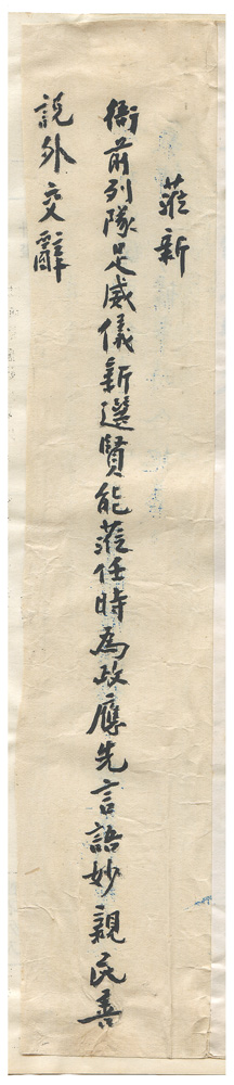| 描述-摘要 | 衙前列隊足威儀。新選賢能蒞任時。為政應先言語妙。親民善說外交辭。 |