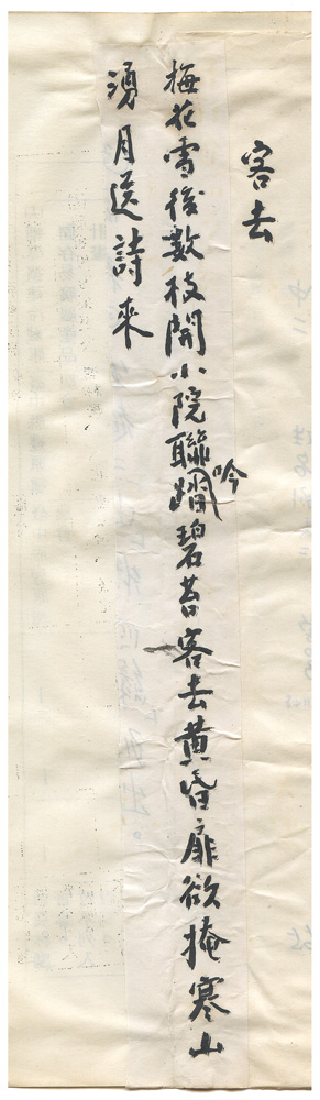 | 描述-摘要 | 梅花雪後數枝開。小院聯吟踏碧苔。客去黃昏扉欲掩。寒山湧月送詩來。 |