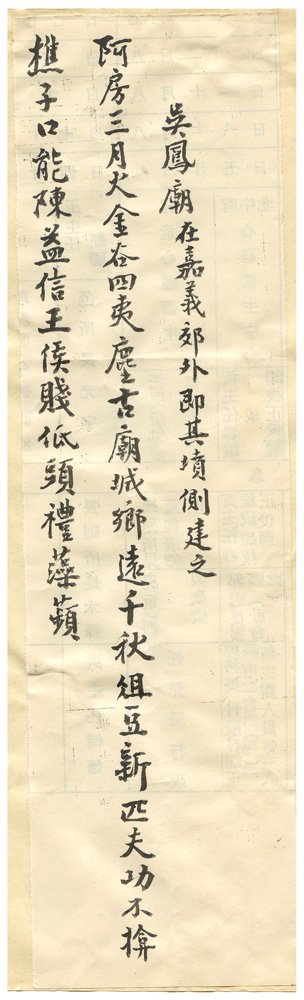 | 數位檔案連結 | 辛亥續鈔中未定稿-吳鳳廟.jpg |