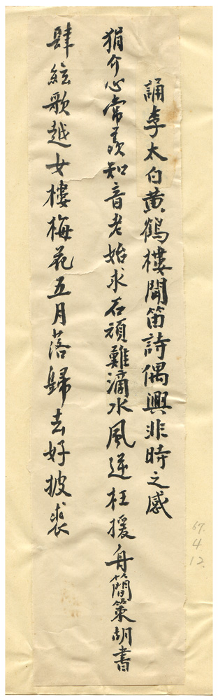 | 件名 | 誦李太白黃鶴樓聞笛詩偶興非時之感 |