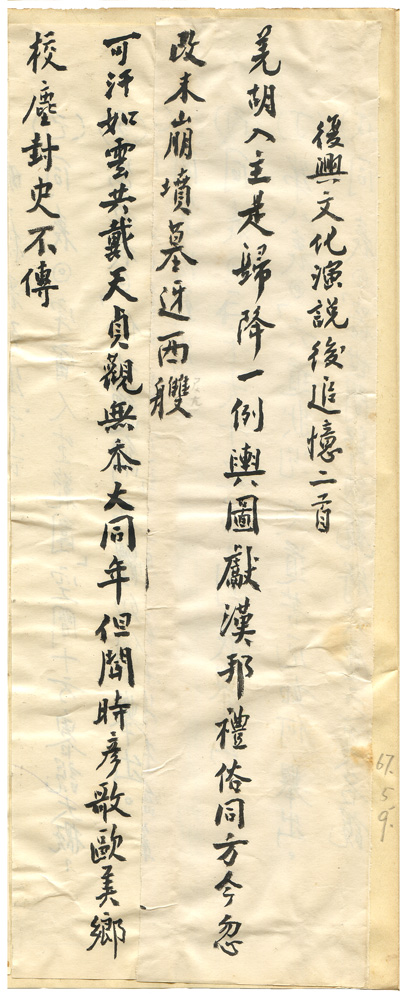 | 數位檔案連結 | 辛亥續鈔中未定稿-復興文化演說後追憶兩首之一.jpg |