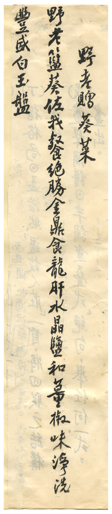 | 描述-摘要 | 野老籃葵佐我餐。絕勝金鼎食龍肝。水晶鹽和薑椒味。淨洗豐盛白玉盤。 |