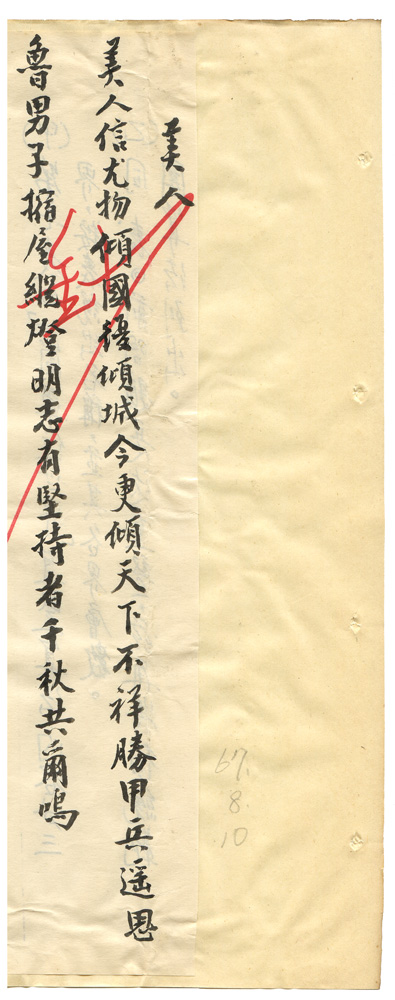 | 描述-摘要 | 美人信尤物。傾國復傾城。今更傾天下。不祥勝甲兵。遙思魯男子。摍屋繼燈明。志有堅持者。千秋共爾鳴。 |