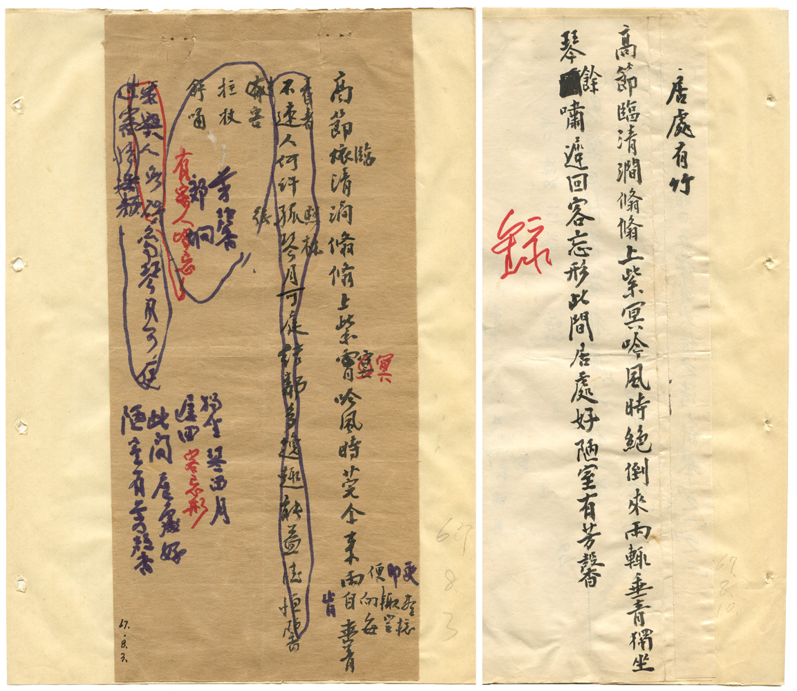 | 描述-摘要 | 高節臨(依)清澗。翛翛上紫冥(宴)。吟風時絕倒。來雨輒垂青。獨坐琴餘嘯。遲回客忘形。此間居處好。陋室有芳馨。 |