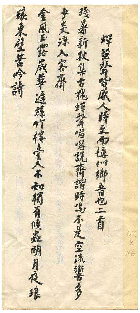 | 數位檔案連結 | 辛亥續鈔中未定稿-蟬蛩聲皆感人時至而憶似鄉音也兩首之二.jpg |