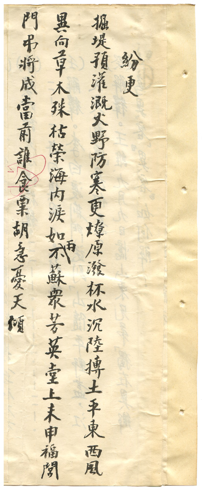 | 描述-摘要 | 掘堤預灌溉。火野防寒更。燎原潑杯水。沉陸摶土平。東西風異向。草木殊枯榮。海內淚如雨。不蘇眾芳英。堂上未申福。閭門弔將成。當前誰食粟。胡急憂天傾。 |