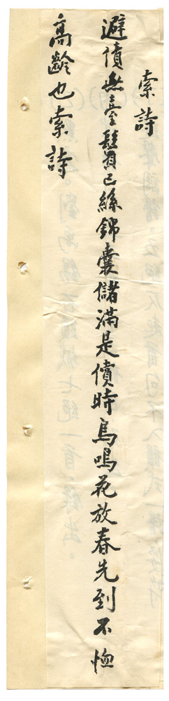 | 描述-摘要 | 避債無臺鬢已絲。錦囊儲滿是償時。鳥鳴花放春先到。不恤高齡也索詩。 |