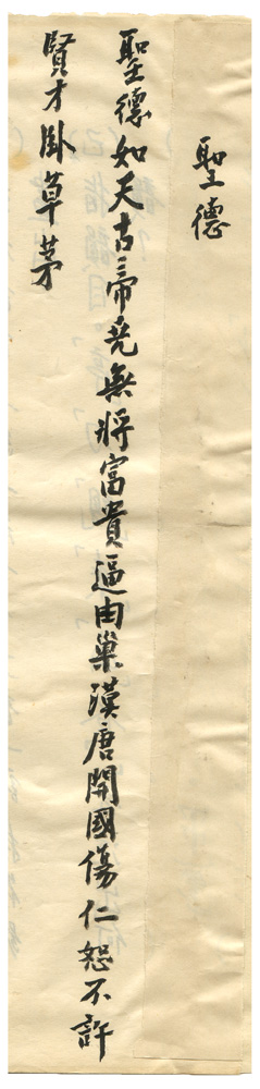 描述-摘要 | 聖德如天古帝堯。無將富貴逼由巢。漢唐開國傷仁恕。不許賢才臥草茅。 |
