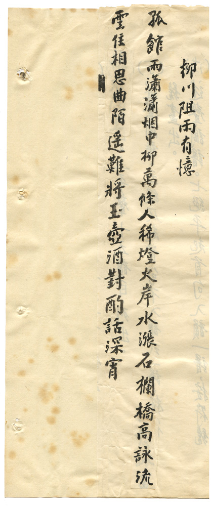 | 數位檔案連結 | 辛亥續鈔中未定稿-柳川阻雨有憶.jpg |