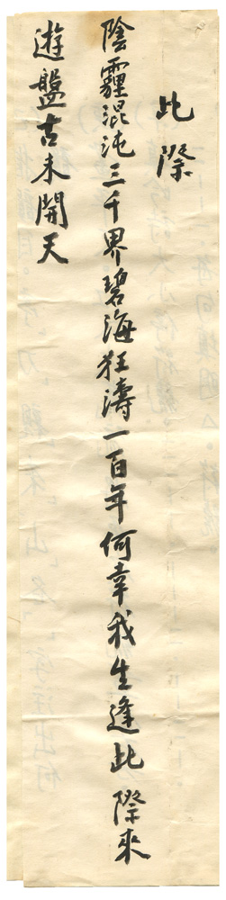 描述-摘要 | 陰霾混沌三千界。碧海狂濤一百年。何幸我生逢此際。來遊盤古未開天。 |