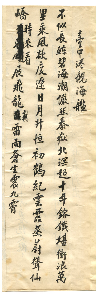 | 描述-摘要 | 不似長鯨碧海潮。儼然泰嶽北溟超。十年鎔鐵堪衝浪。萬里乘風欲度遼。日月升恒初鶴紀。雲霞蒸蔚聳仙嶠。時來看展飛龍翼。雷雨蒼生震九霄。 |