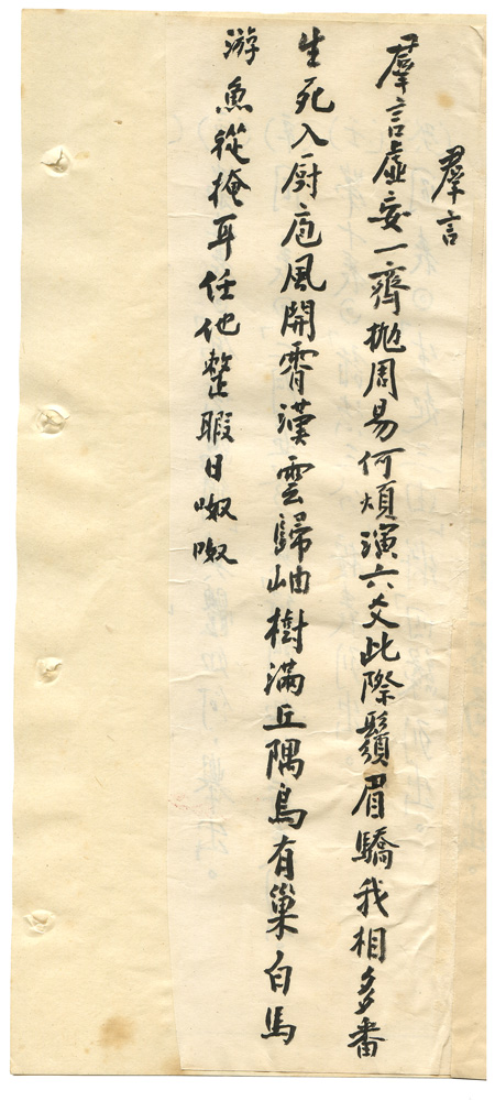 | 描述-摘要 | 群言虛妄一齊拋。周易何煩演六爻。此際鬚眉驕我相。多番生死入厨庖。風開霄漢雲歸岫。樹滿丘隅鳥有巢。白馬游魚從掩耳。任他整暇日呶呶。 |
